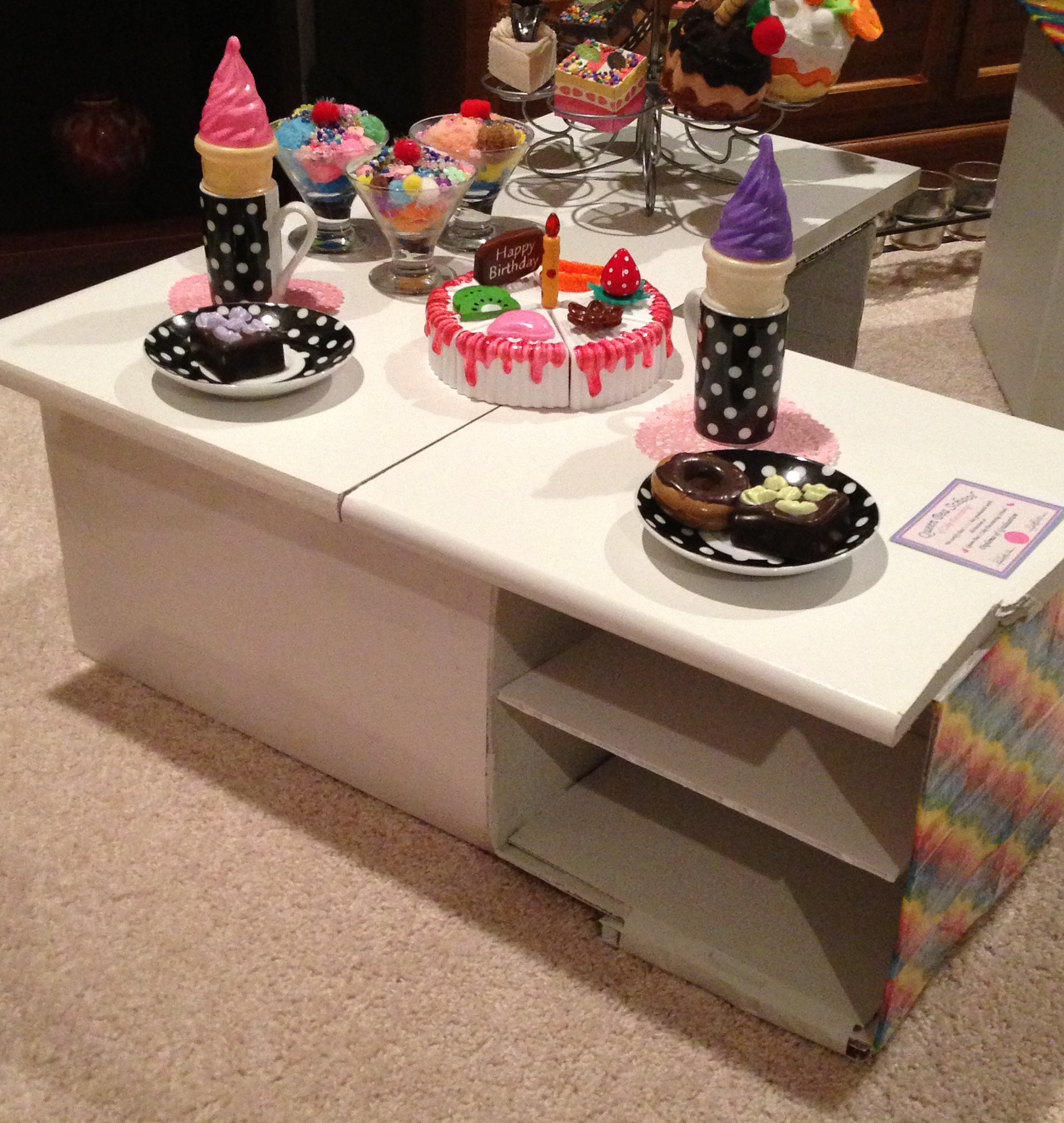 Anyway, there you have it, your very own ice cream parlour for your dolls. I hope that you have fun with this. It really didn’t take as much time or effort as I thought it would. The most time spent was in the design.