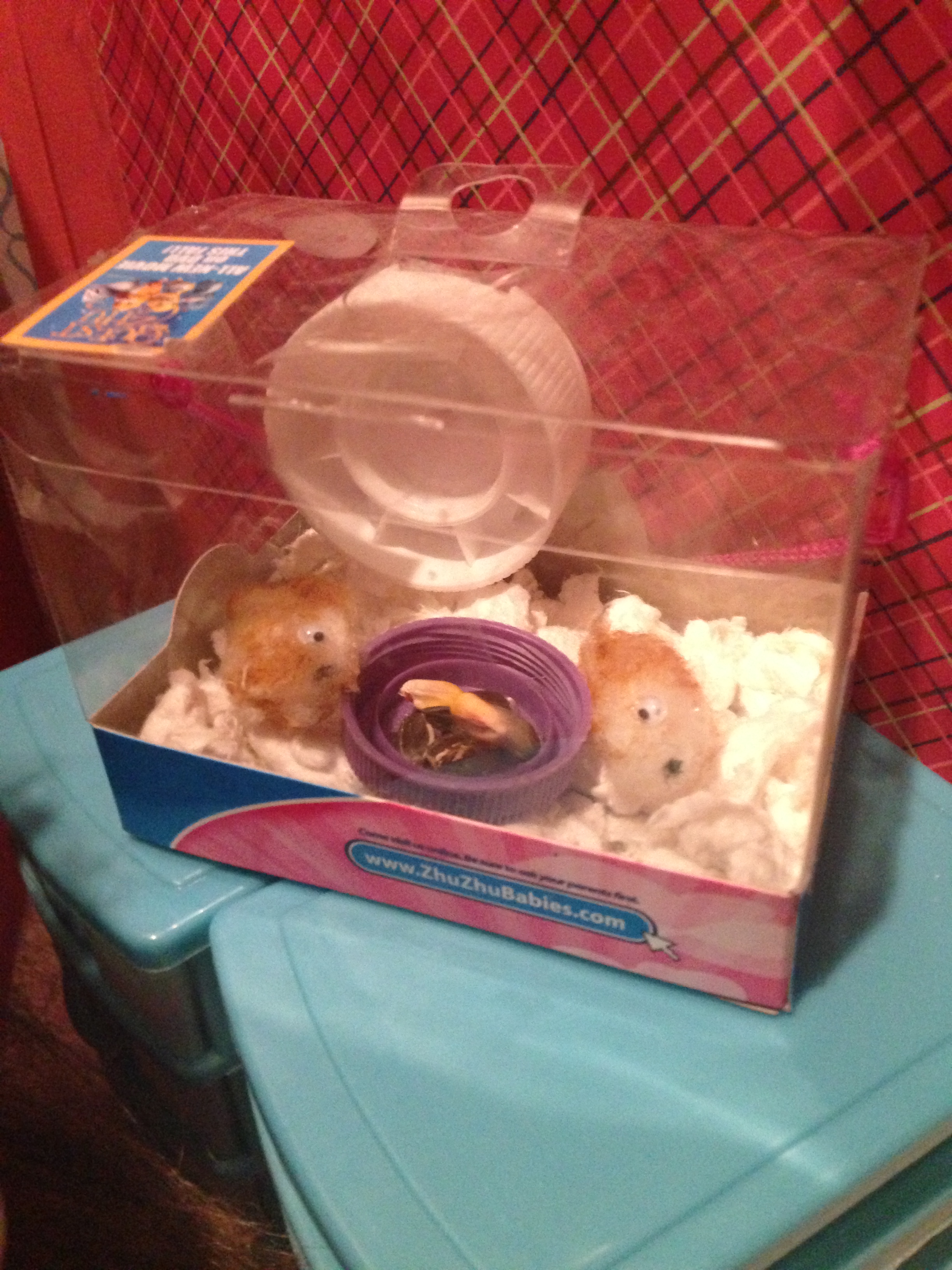We even brought in our dolly’s cute little hamsters we made to be the class pets. See how we made their cage here. The hammy’s themselves are pieces of cotton balls that I added a bit of glue stick to and rolled around until I got the right shape. Then I just used a bit of light brown marker to add some colouring to their fur. A black dot for a nose and some tiny googly eyes makes them quite cute, I think.
