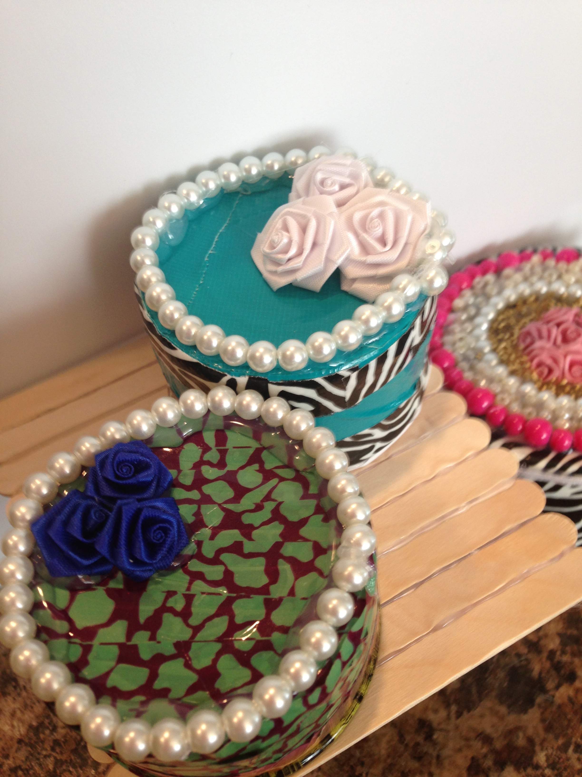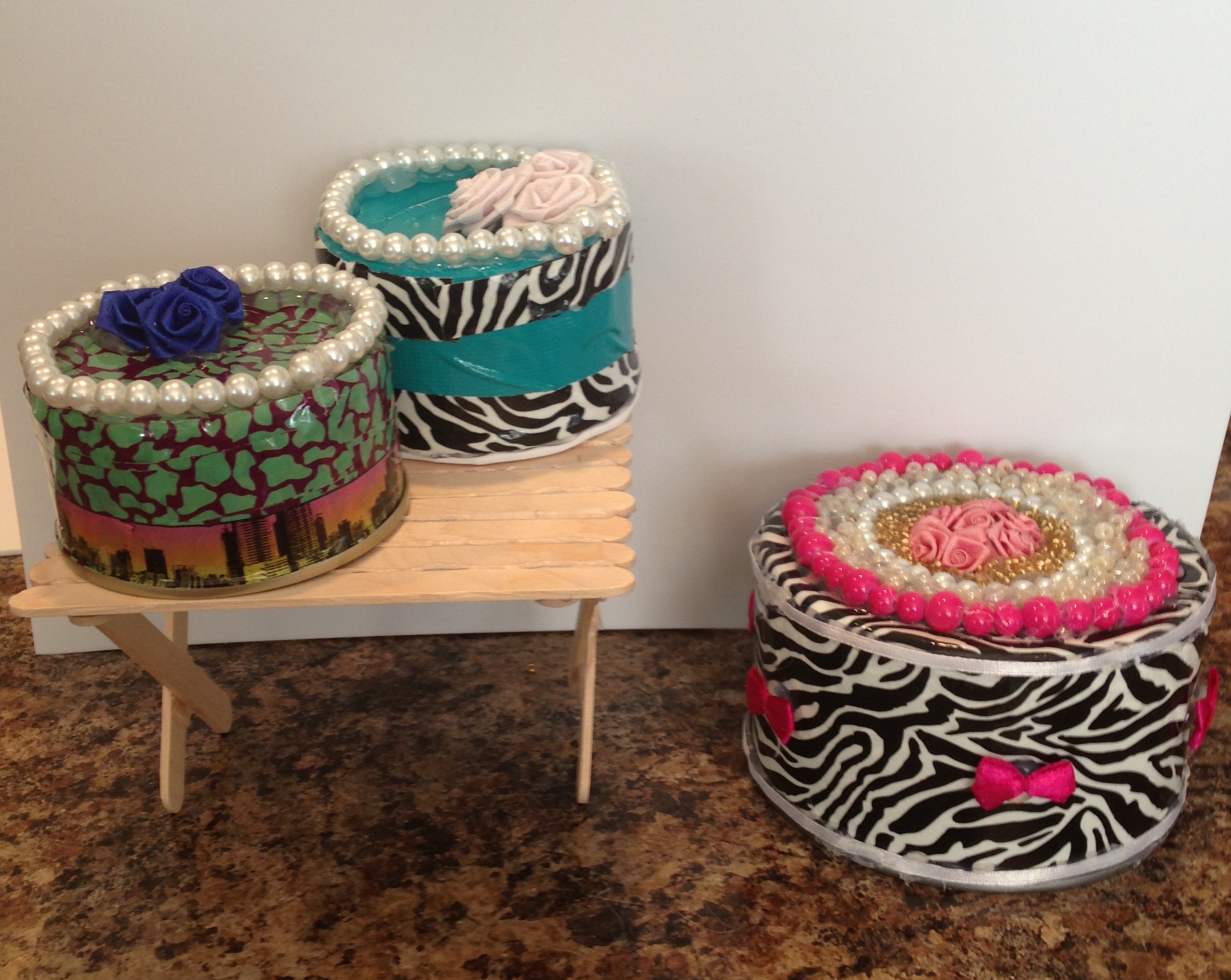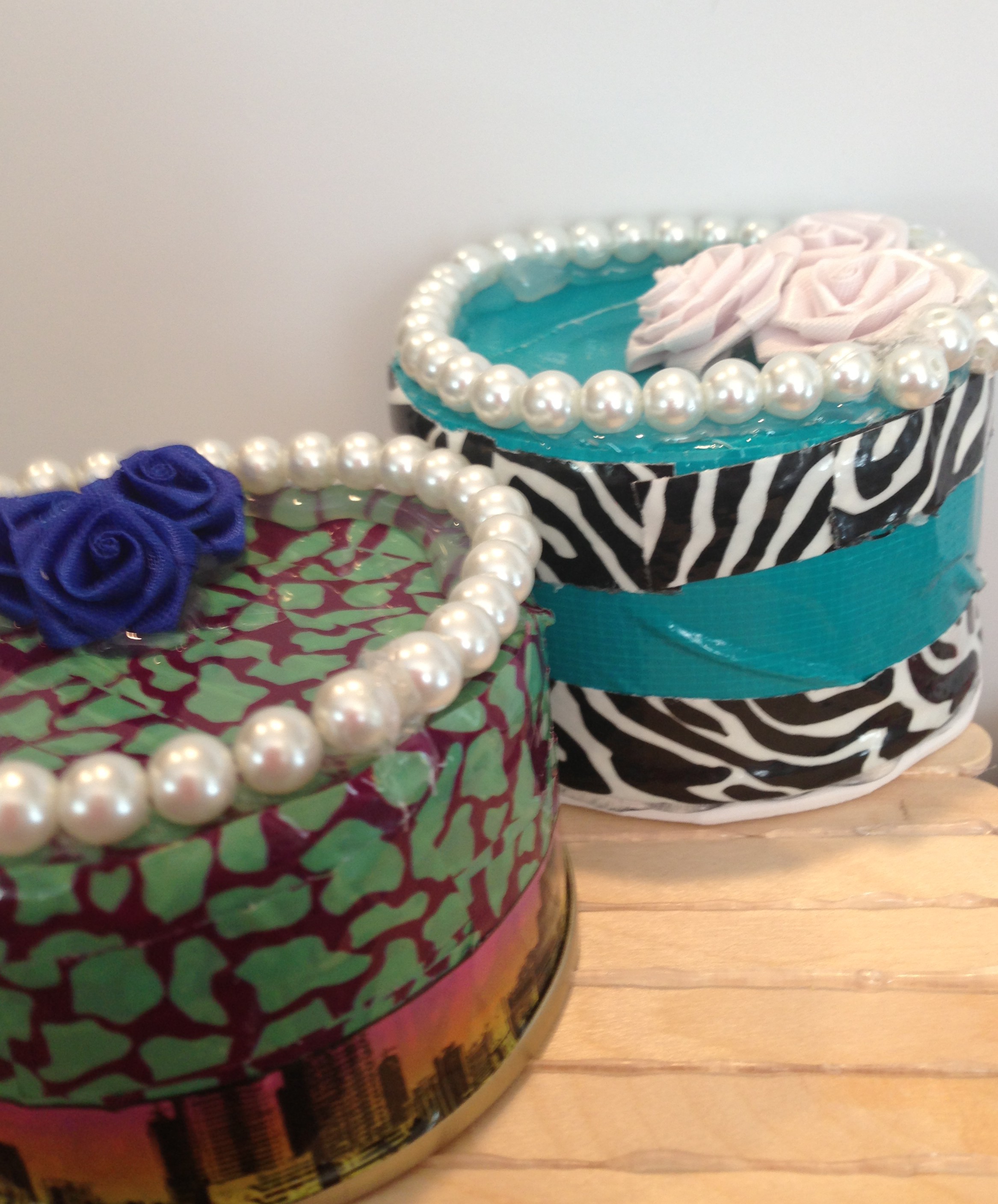 My daughter tried her hand at making one out of tapefitti/washi tape rather than duct tape. It worked just as well, it just took longer to cover. These smaller tapes are the perfect fit to use as trim though.