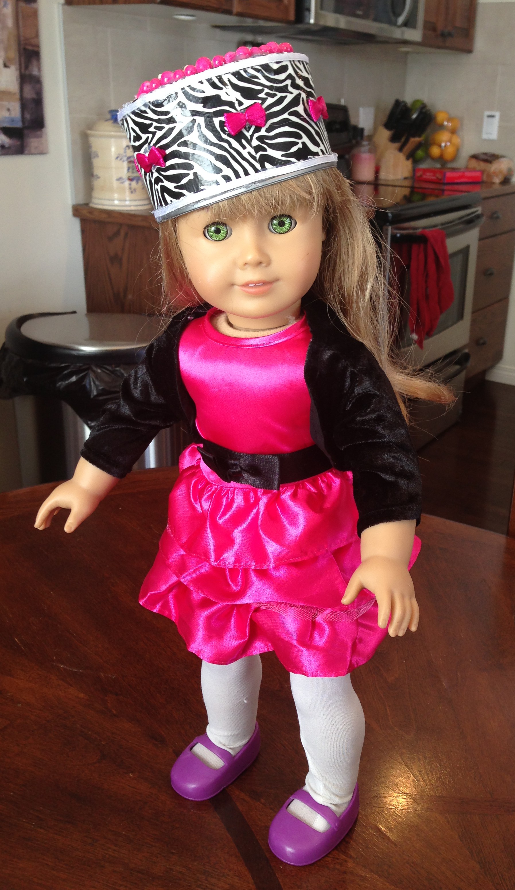 The other crazy thing that my daughter discovered is that if you leave the larger ones open at the bottom, they double as a dolly hat! You could even ditch the cake idea altogether and make the cans into little hats instead if you wanted. Even the smaller cans could be fixed with a strong elastic string and used as a hat/headband/fascinator.