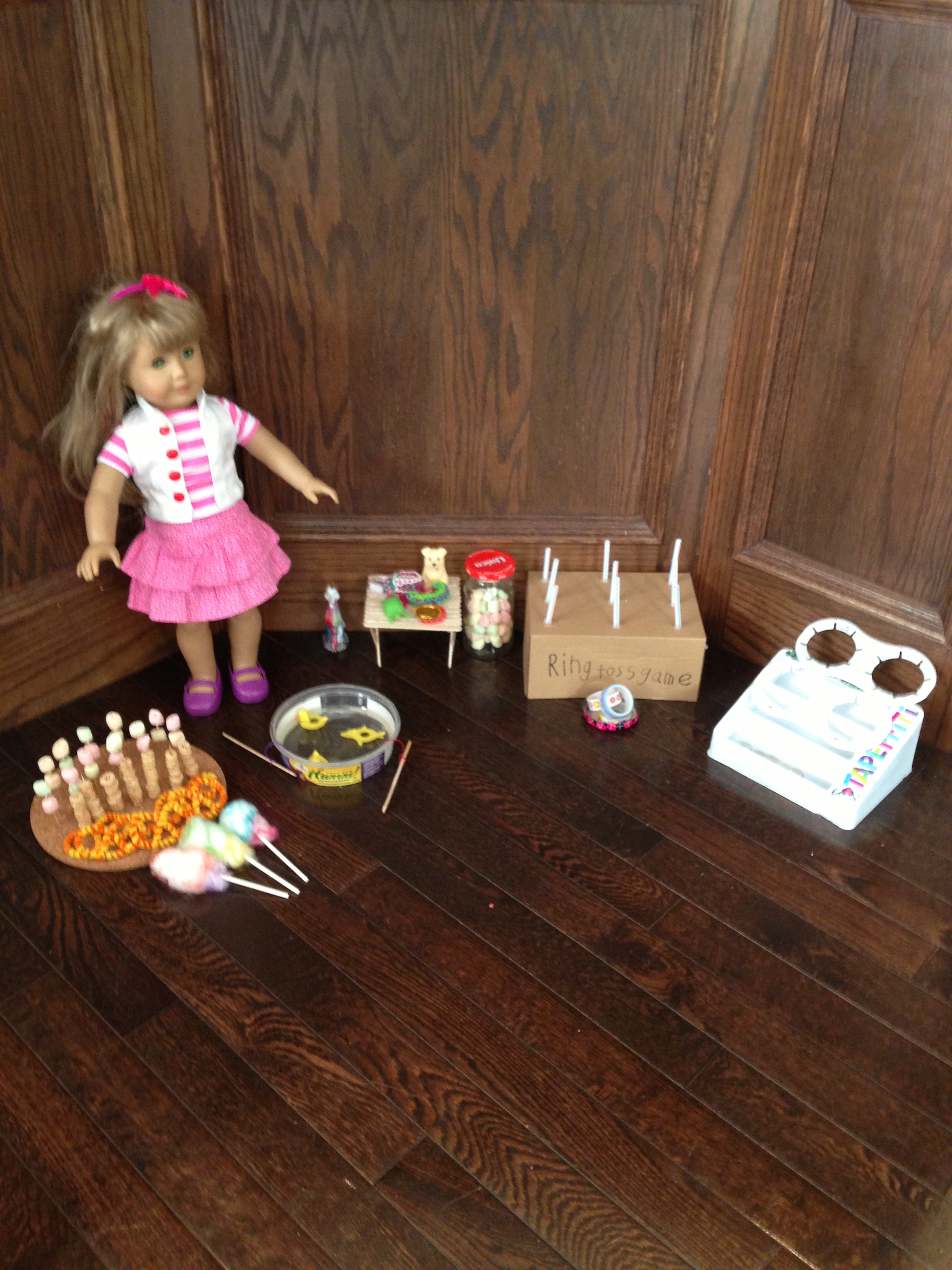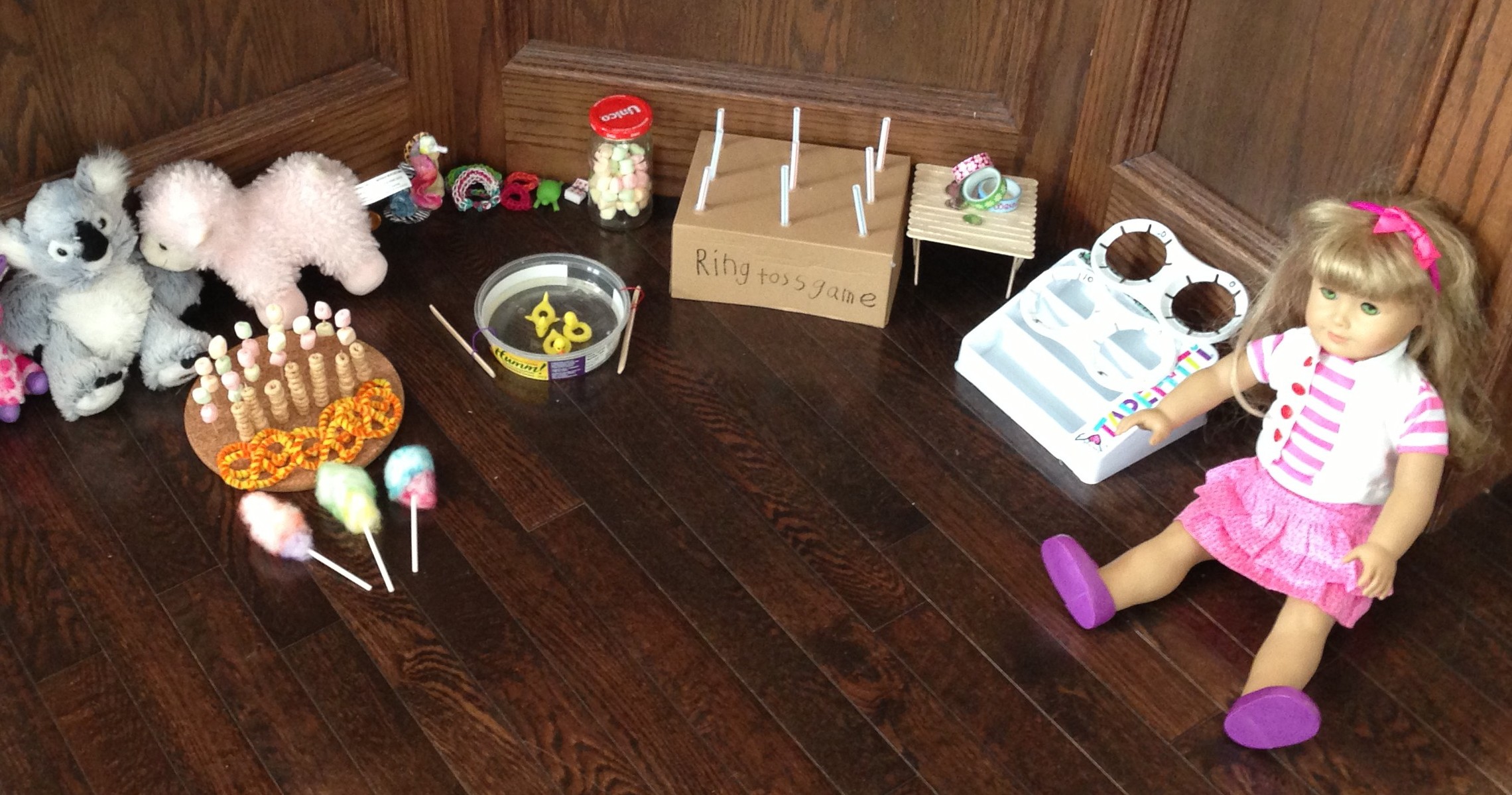 So instead, today we decided that the dolls should take a trip to the carnival. As the crafty fiend that I am, I did end up sneaking some light crafting in there after all, but it was nice to just hang out and play.