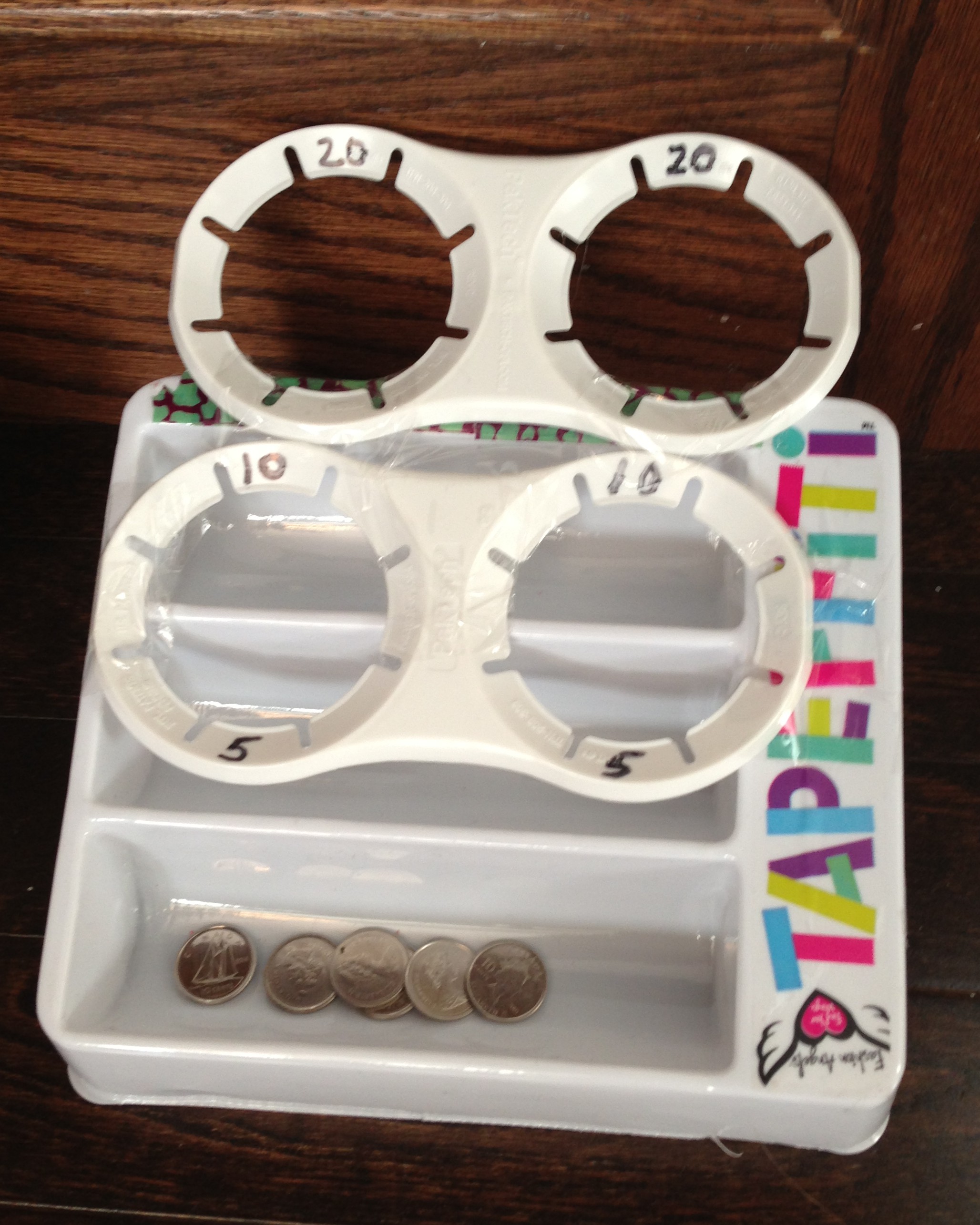 The next carnival game we created was the coin toss. I can’t call it the penny toss because we had no pennies. We just used dimes instead.