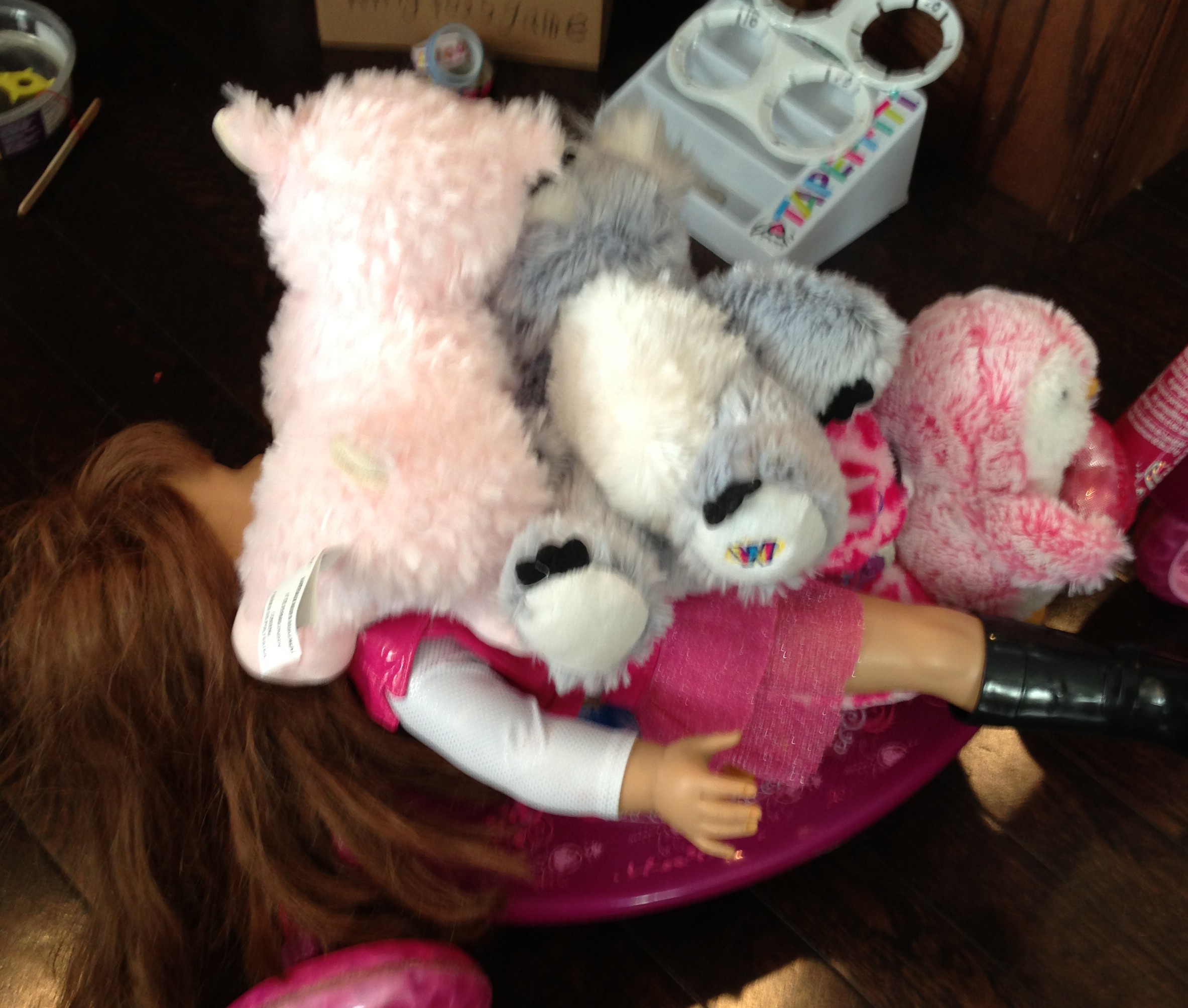 Anyway, because we were home, and we had virtually nothing to do, I decided that we would simply play with our dolls. Usually our doll play consists of finagling some intricate and complex craft for them. We often don’t have much time left for actual play.