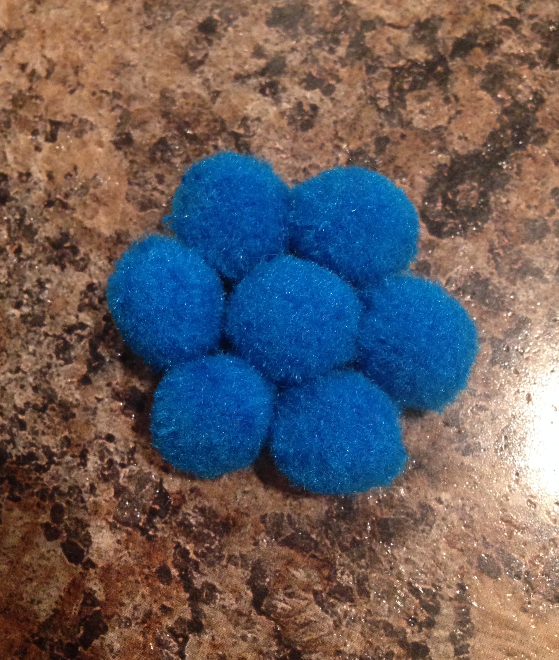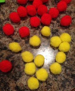 These are very cute to make whenever you have lots of pom poms. They whip up right quick, and they are very easy to make. We had a ton of pom poms.