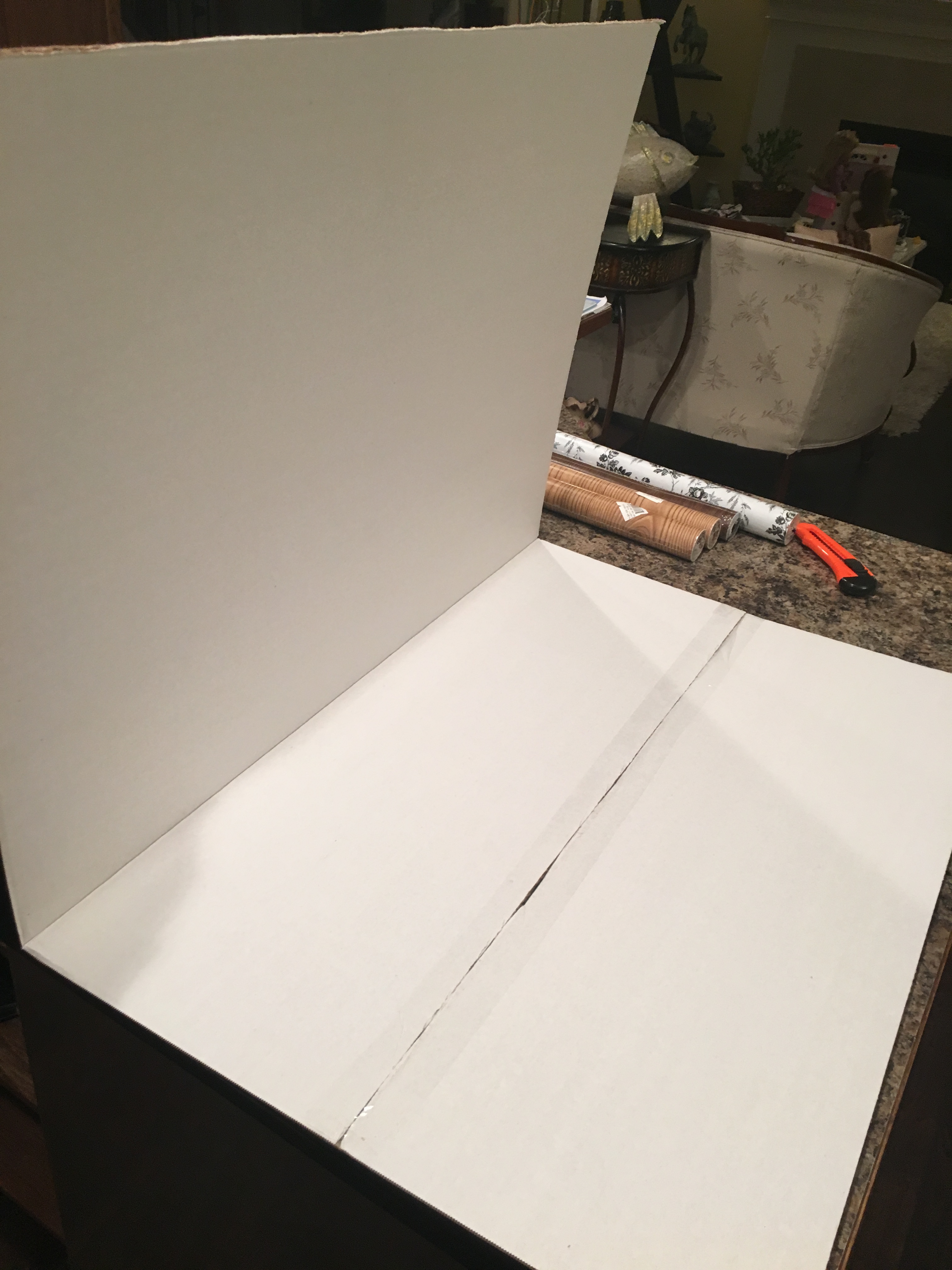 Next, I cut off one of the sides and attached it to the other side with packing tape.