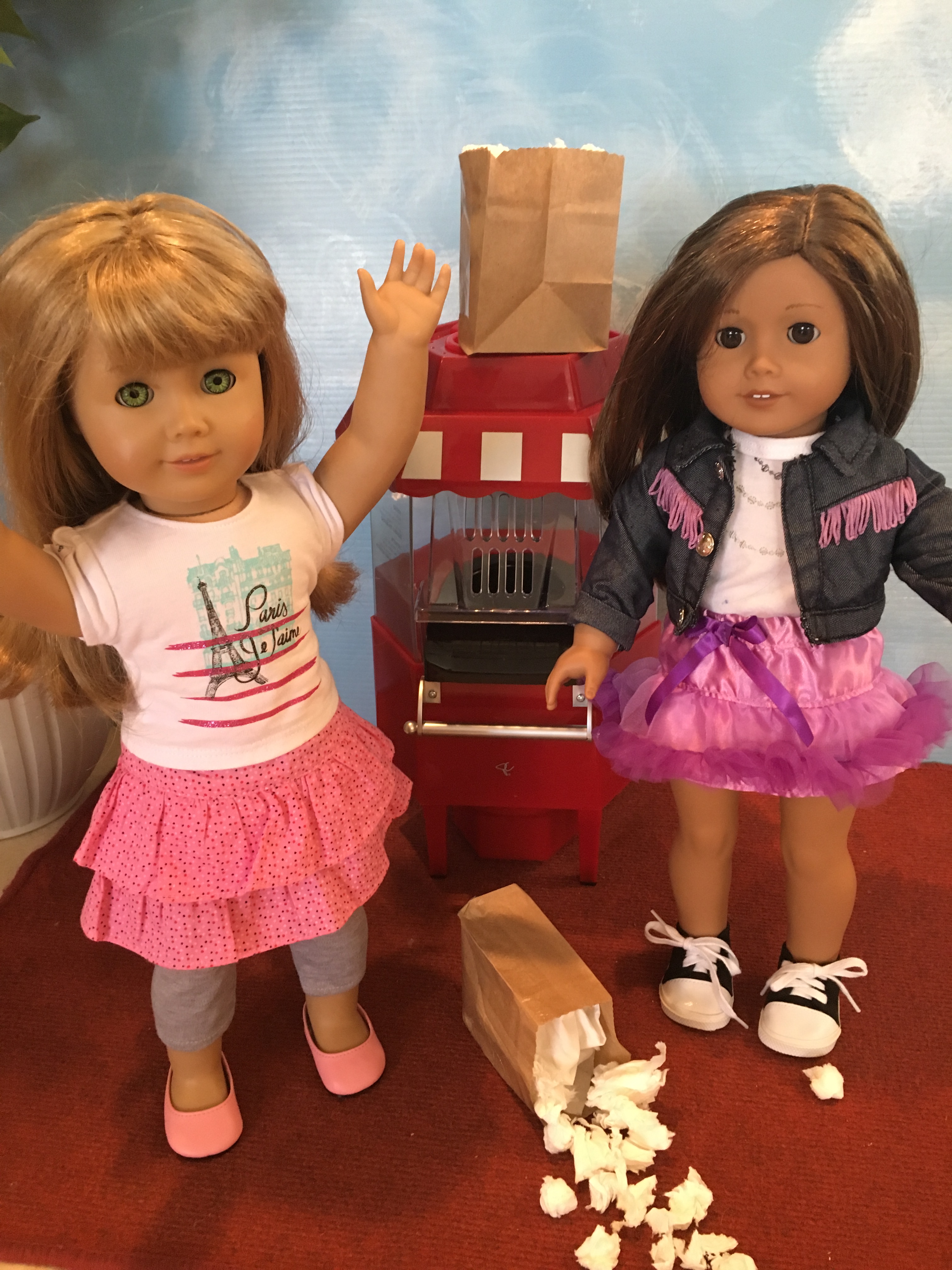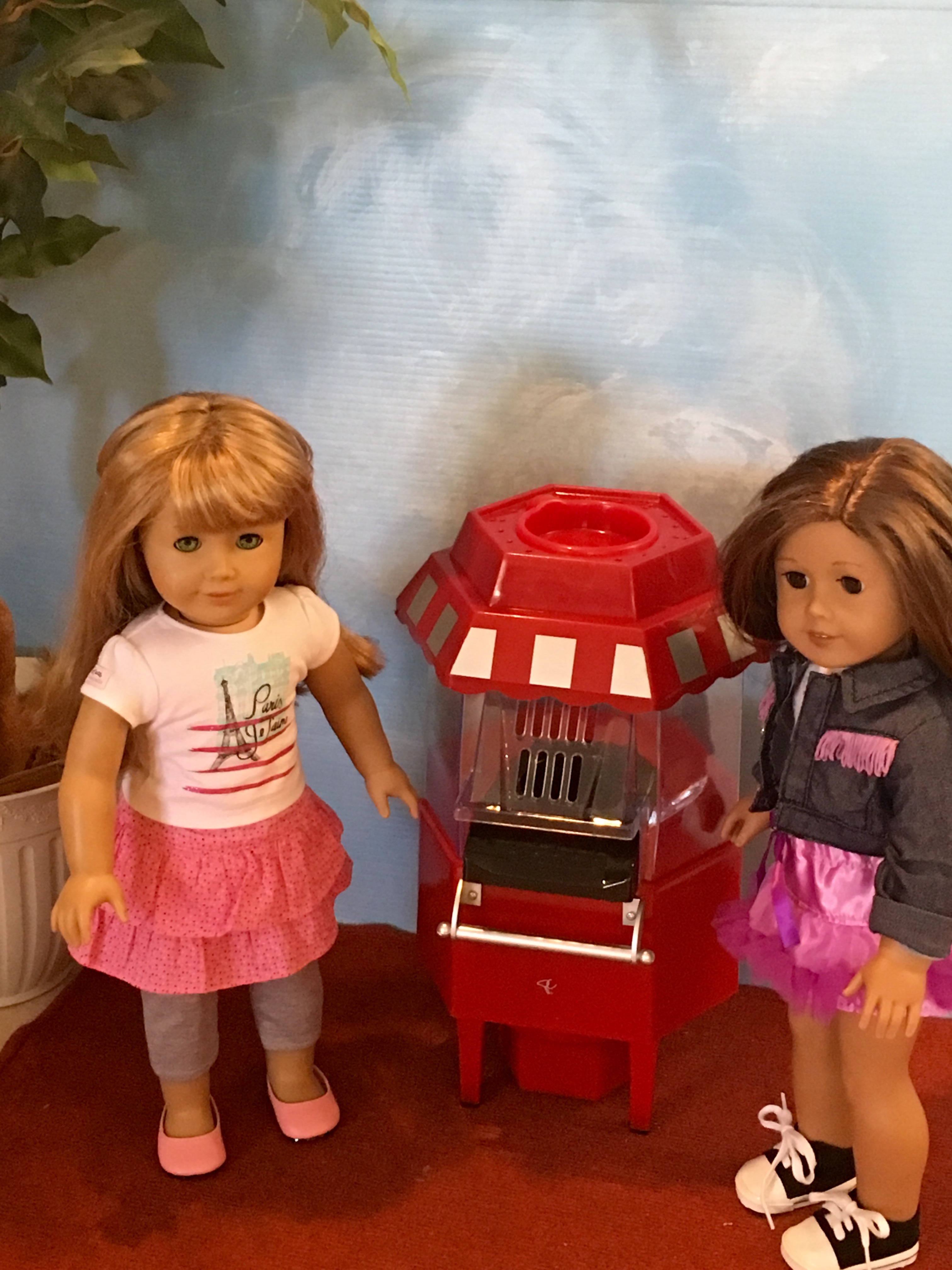 Here are a few pics of our dolls enjoying some time at the popcorn stand!