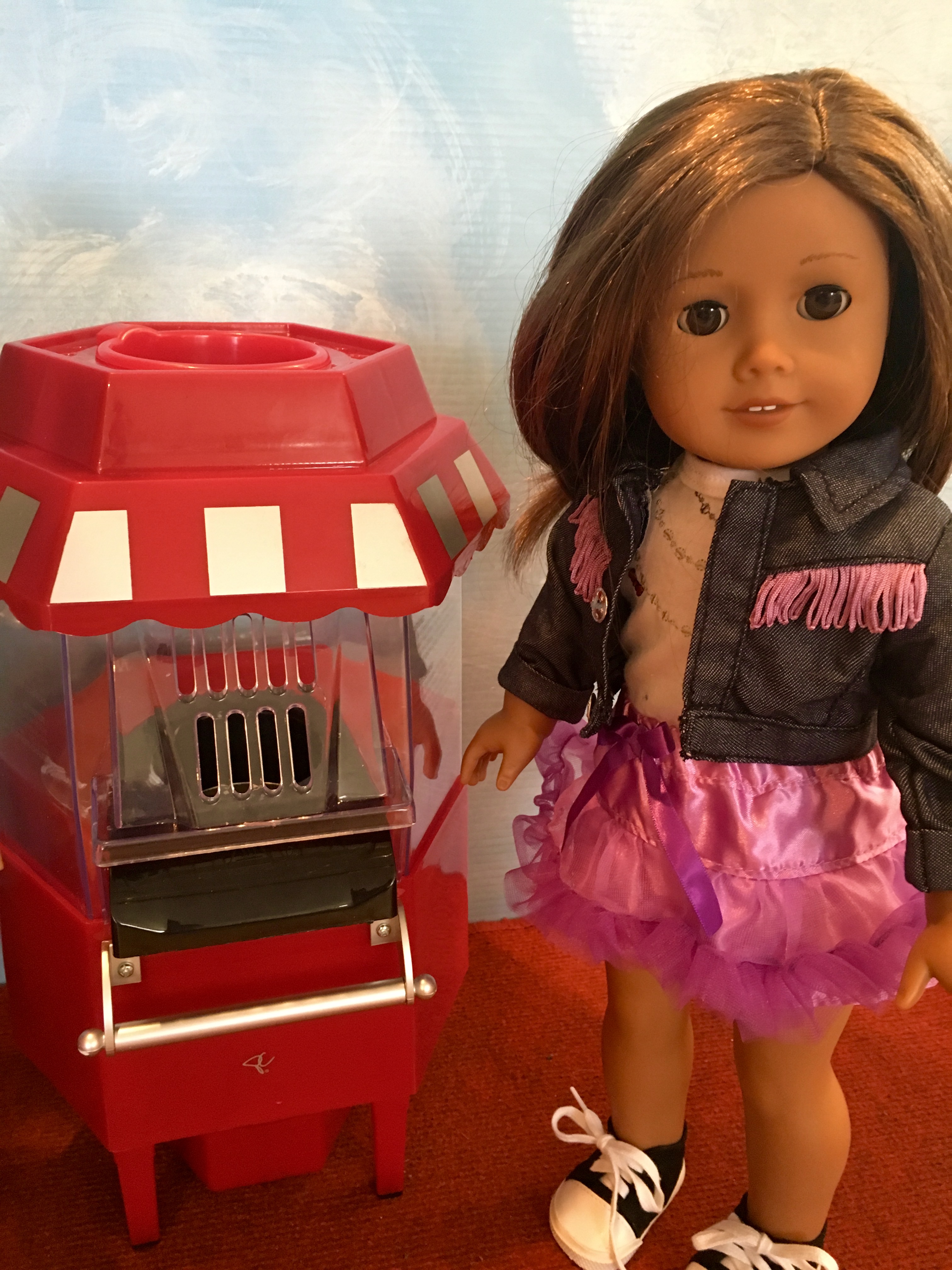Hi there! Today I have a quick post featuring our doll’s popcorn machine. I found this little machine at a thrift store and I thought it would be perfect for our dolls.