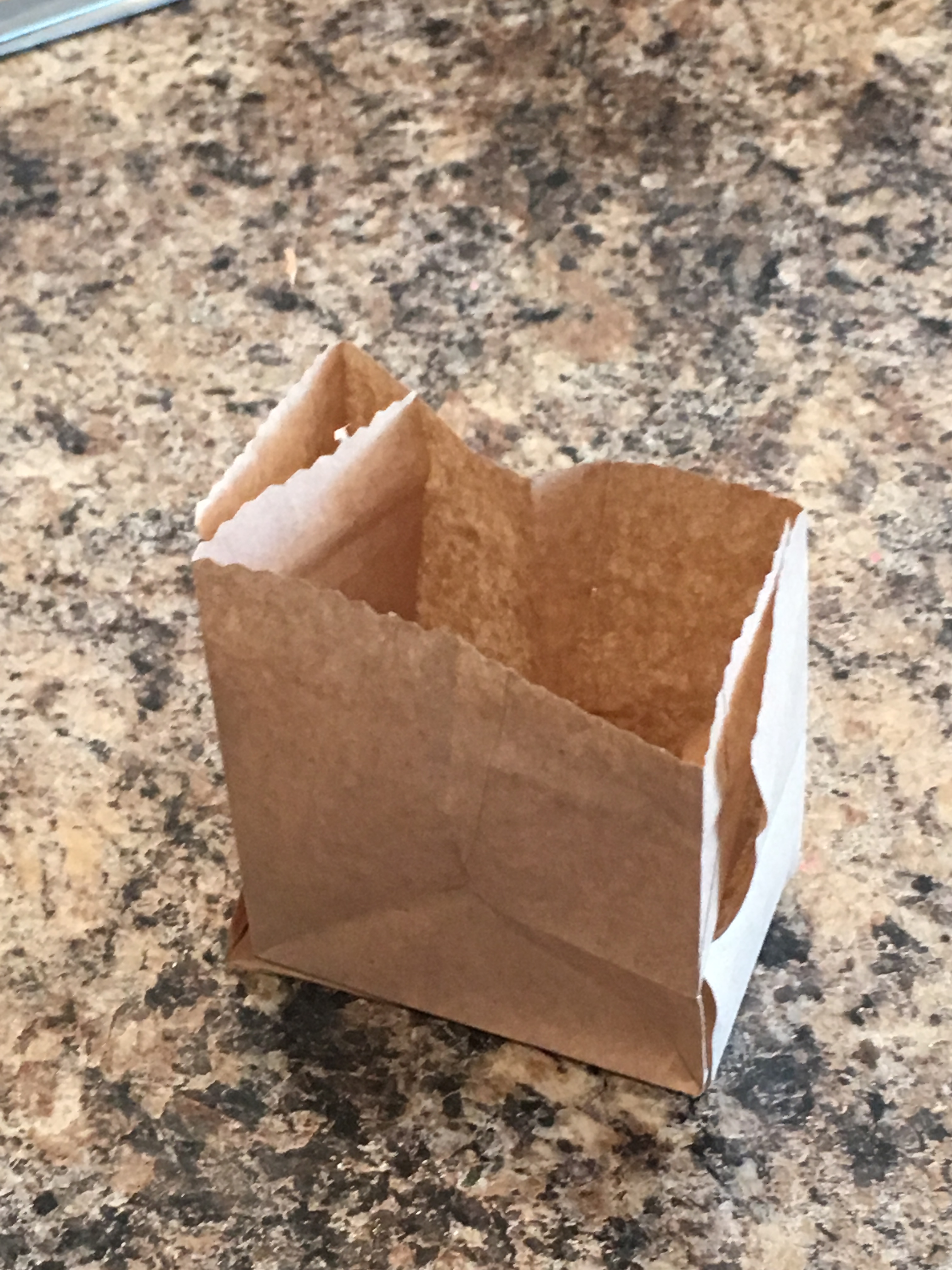 I wanted to make some little popcorn bags for them so I took a paper bag and some tissue and got to work.