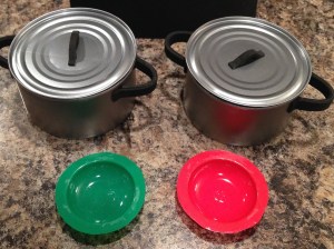 The chicken soup in the bowls is made out of craft foam and packing tape.