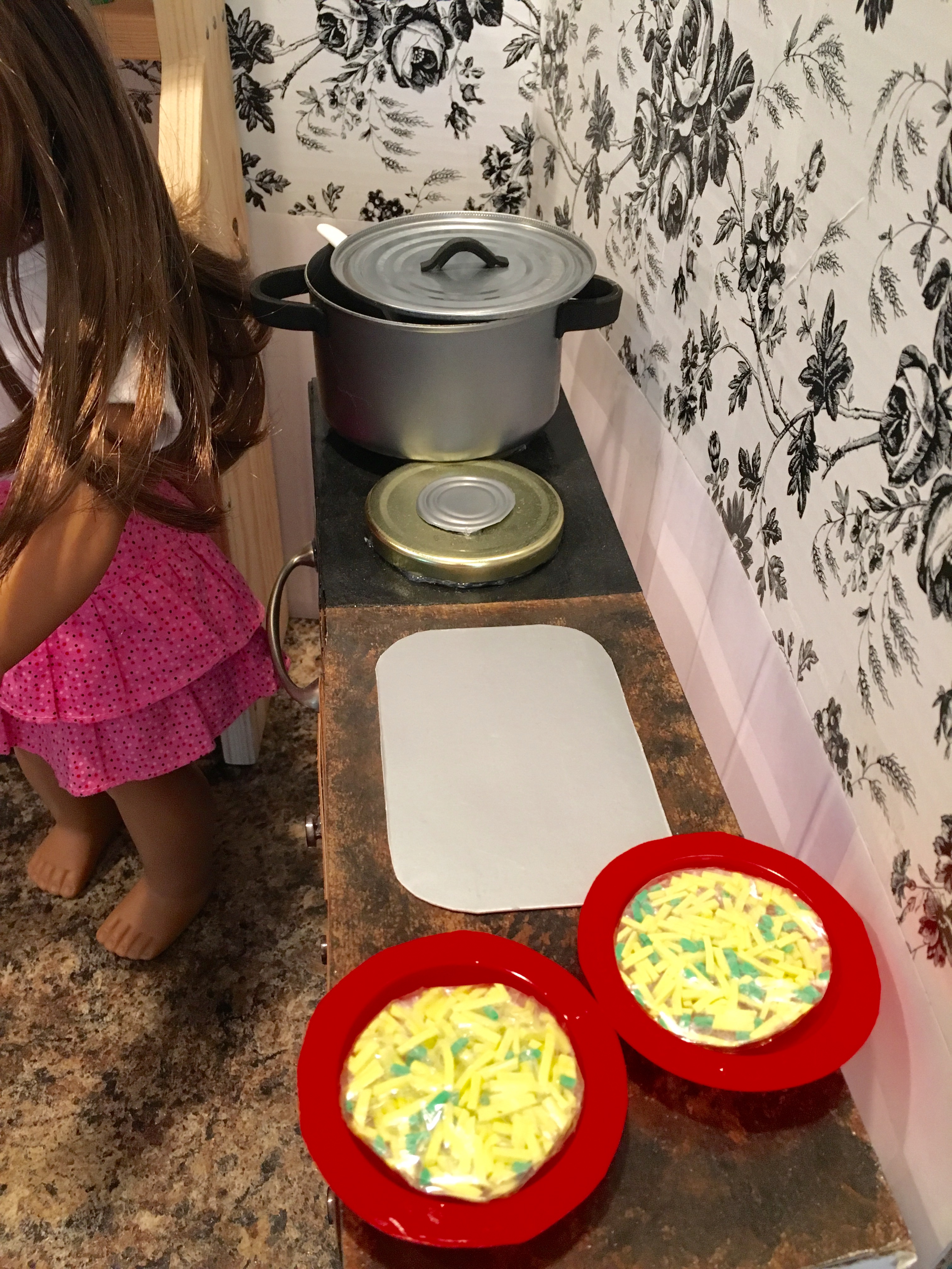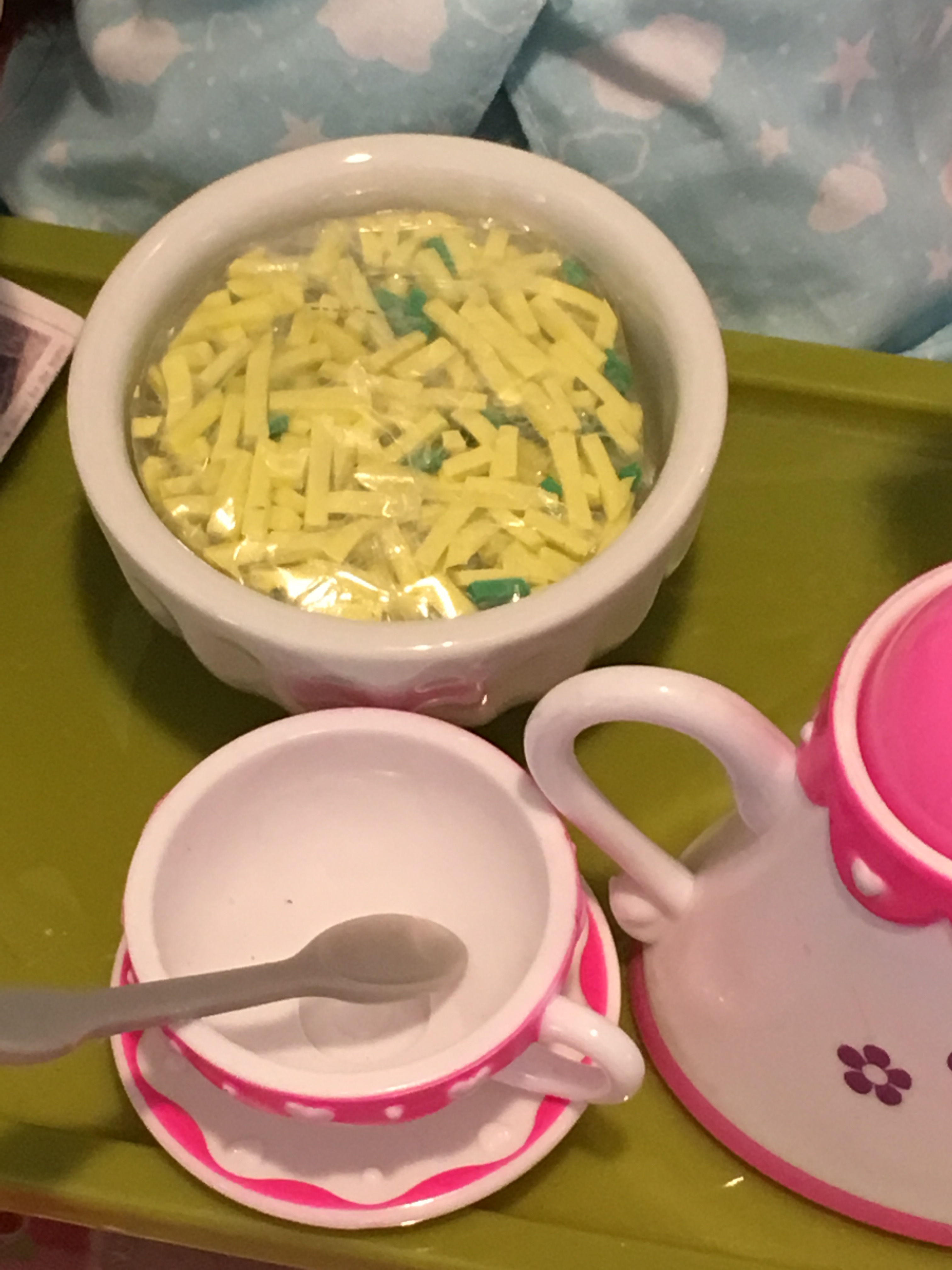 Hello all! Today, we are making chicken noodle soup. For dolls! haha!