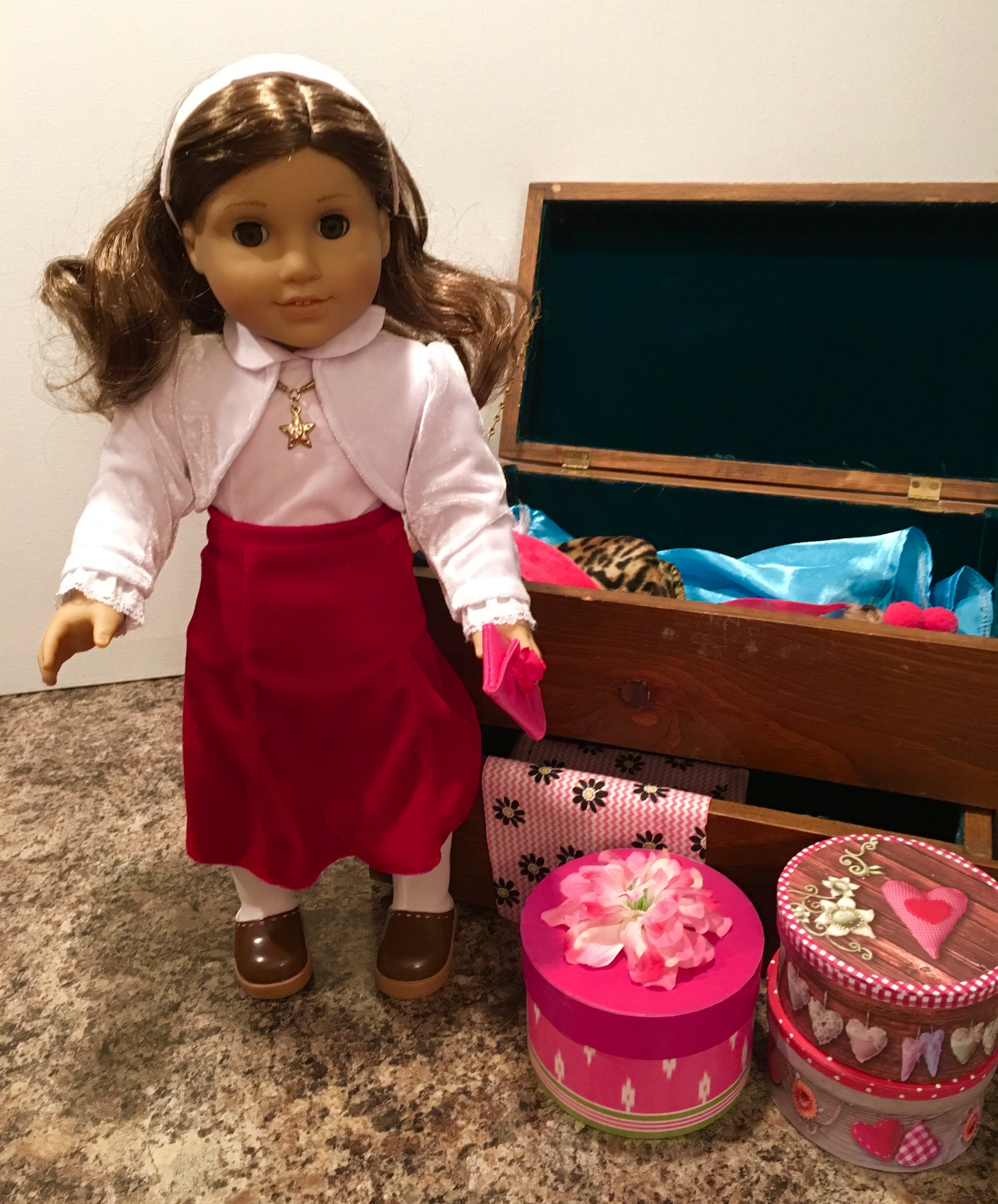 Rebecca’s hatboxes are dollar store items. I can’t say enough how much we love the dollar store for dolly finds!