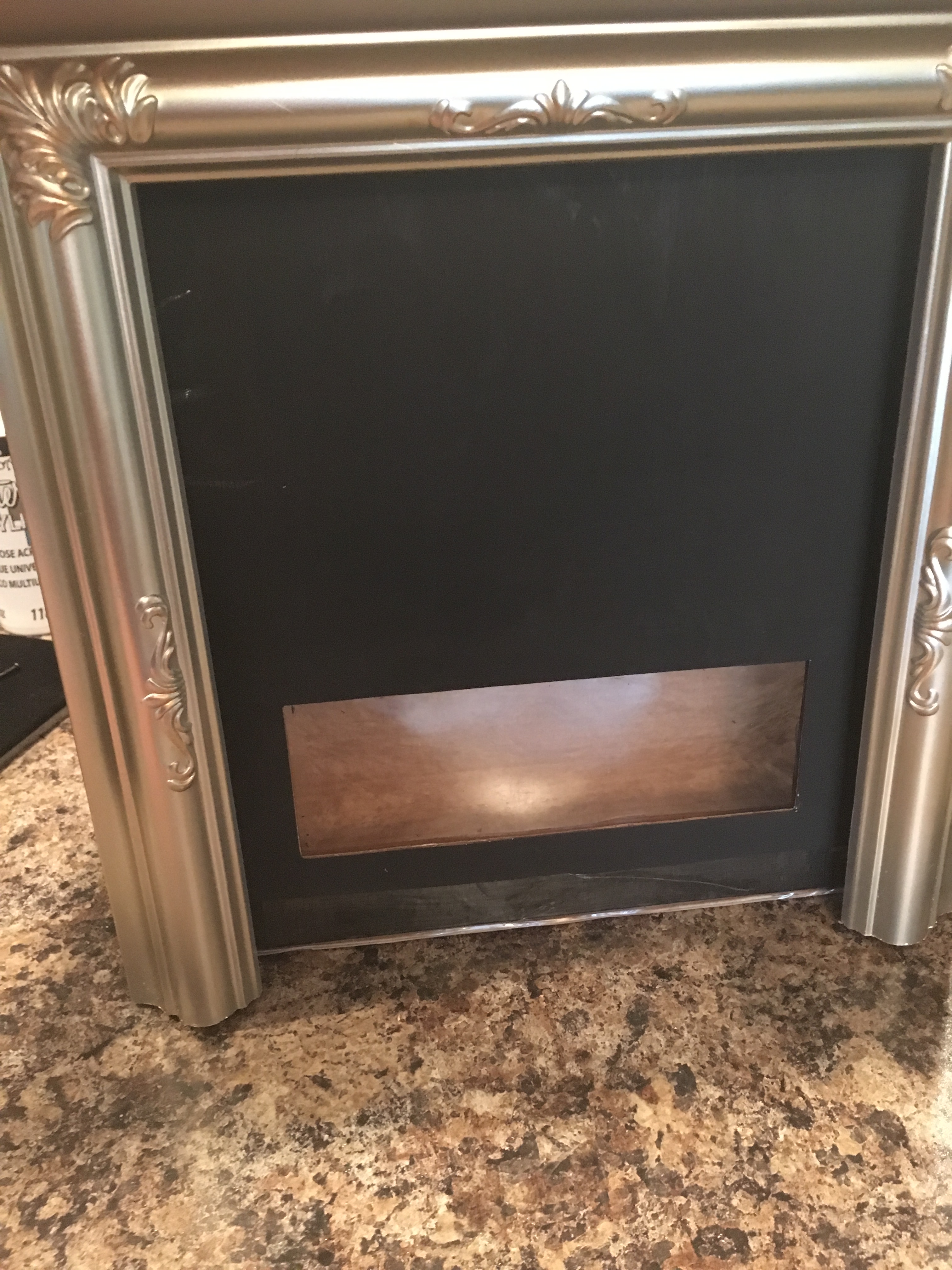 Now, you can leave it at that, or if you like the look, take the bottom piece of the picture frame that you set aside earlier, and hot glue it to the top of the mantle.