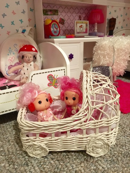 I have to say, I am so happy that all of our doll pieces are finally finding a forever home. It was getting so frustrating with everything spilling out all over the floor all the time! Now everything will have a place!