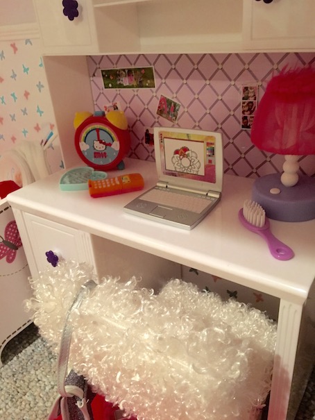 This is the MyLifeAs doll desk. We purchased it from Walmart a while ago. I really like it a lot. It is one of our favourite doll furniture items.