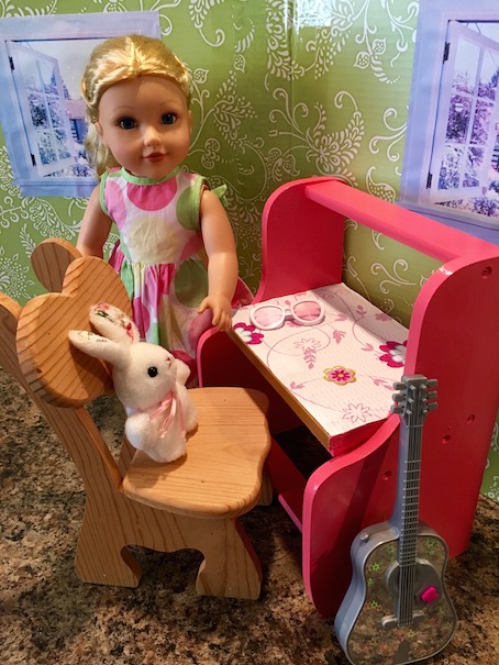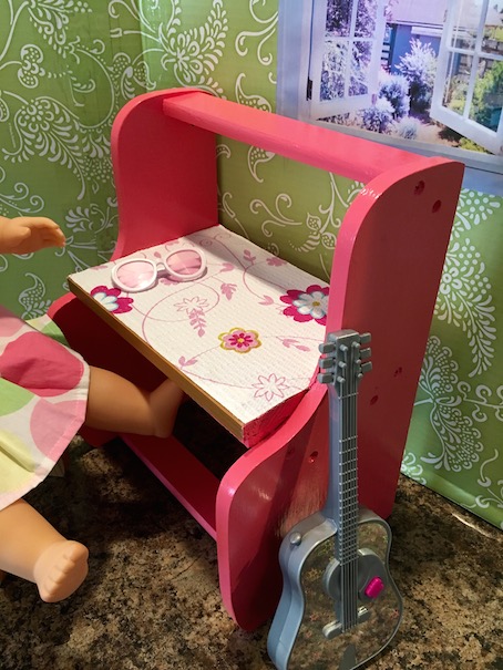 Tada! Despite not knowing what the heck this was to begin with, it turned out super cute as a doll desk! At a dollar, I couldn’t possibly go wrong! I’m still curious, but no mind. It is going to be so cute in our doll’s new bedroom!