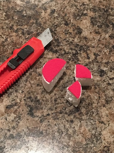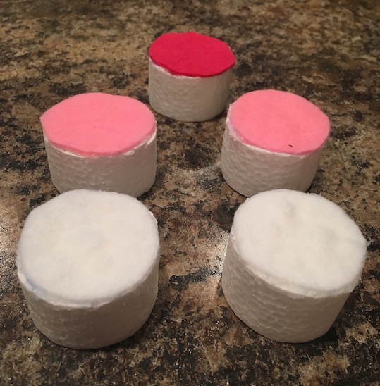 This is your icing. It also provides a nice uniform surface to decorate. Our foam had some punctures in it, so the felt helped to smooth things out a bit.