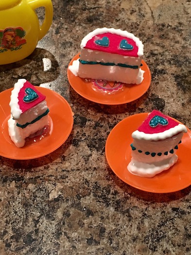 I just hot glued my pieces to the plates because styrofoam is pretty light and flimsy on its own. This way you can make some single servings for your dolls!