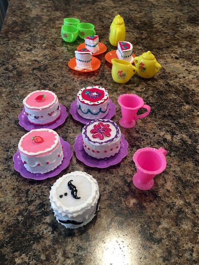 I got this little tea set from the dollar store. I only had one complaint, and that was that it would only serve three. To me, that just seemed a bit odd. In fact, it is odd now that I think about it, since three is an odd number after all. LOL!
