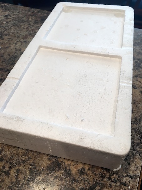 For the large sheet cake, I had a large styrofoam packaging insert similar to the one above. It happened to be the perfect size to make a cake. π I love recycling!