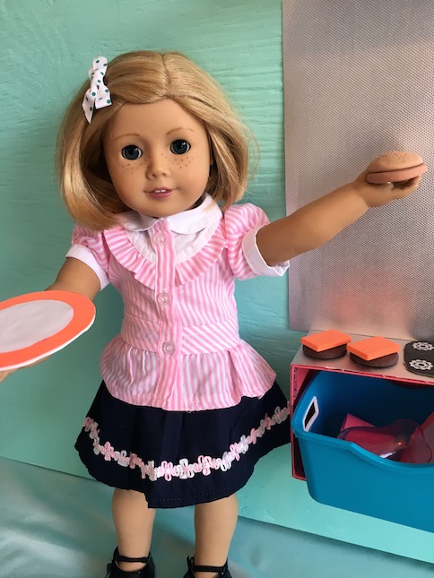 Instead, we have our sweet Kit Kittredge filling in the part of Maryellen. She has been working at the Seaside Diner for Maryellen lately, so I thought, why not dress her for the part?