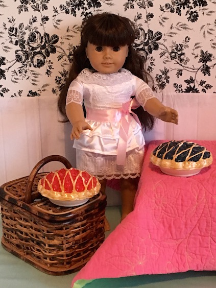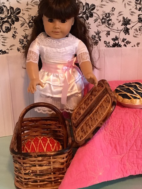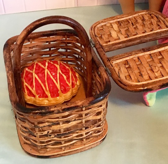I know that the picnic basket is a bit large for the dolls, but I consider that it would probably be her mom’s picnic basket since she is only 9 years old or so. I also consider that her mom would want to be able to pack enough food in there to feed the whole family. π