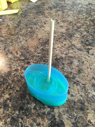 Cut the bamboo skewer to size. Then glue it into the little hole in your lid.