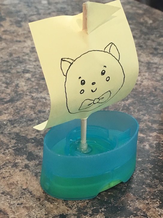 Her boat was made from the lid of a Smarties bottle. 🙂