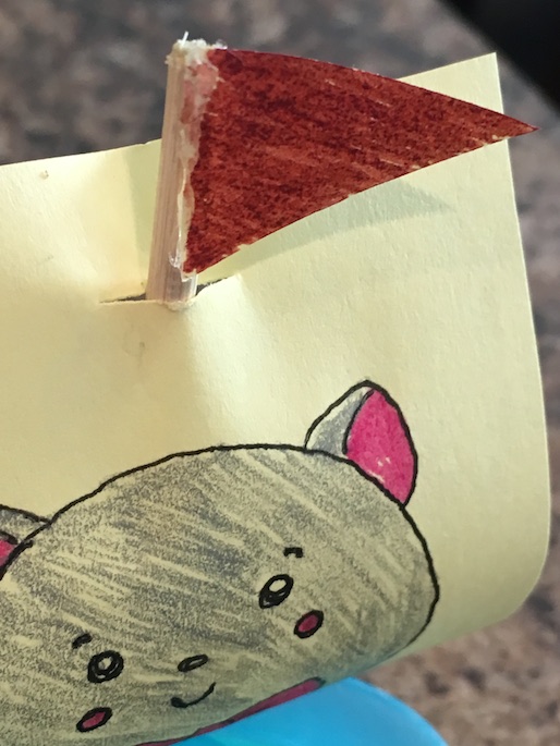 Thread your sail on the bamboo skewer. We glued a little flag on top to keep the sail in place.