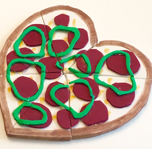 Heart Pizza – Okay, how many of you saw this heart shaped pizza by AG, and did a little swoon? We did! So of course, we had to recreate our own. We already made a round pizza, so for this craft we decided that we had to have a heart shaped one.