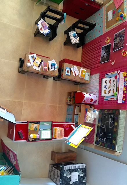 Next is the interchangeable photo wall. There are tons of photos stored in the school cabinet, so the girls have lots of options!