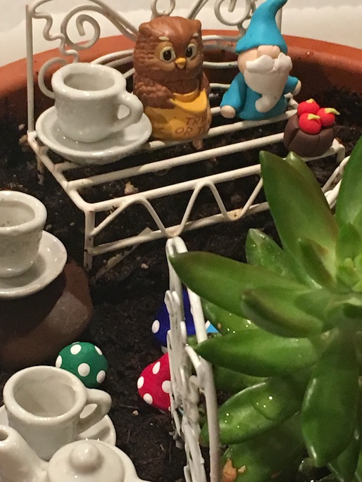 Do you have a fairy garden? It could be anywhere. It doesn’t have to be in a pot. Even a tiny corner of dirt somewhere with a few little plants growing in it is ideal for fairies.