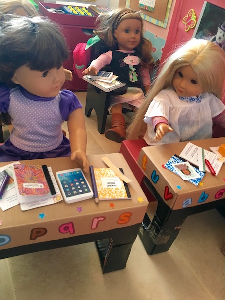 Angie began pulling all of her stuff out of her book bag.