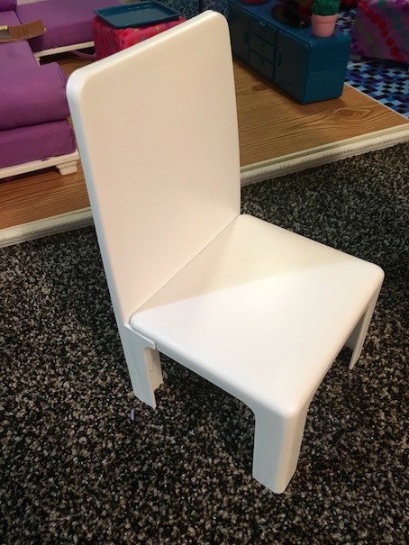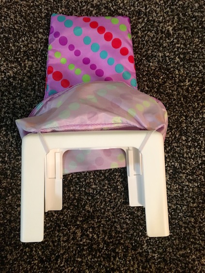 Here it is after it is removed. I had a bit of a struggle getting it back on the chair, so I don’t know how well this would go over with kids who are younger, and want to just pull everything apart. (Why? Why do they just want to destroy everything? Can’t they just leave well enough alone?) Ahem. 🙂