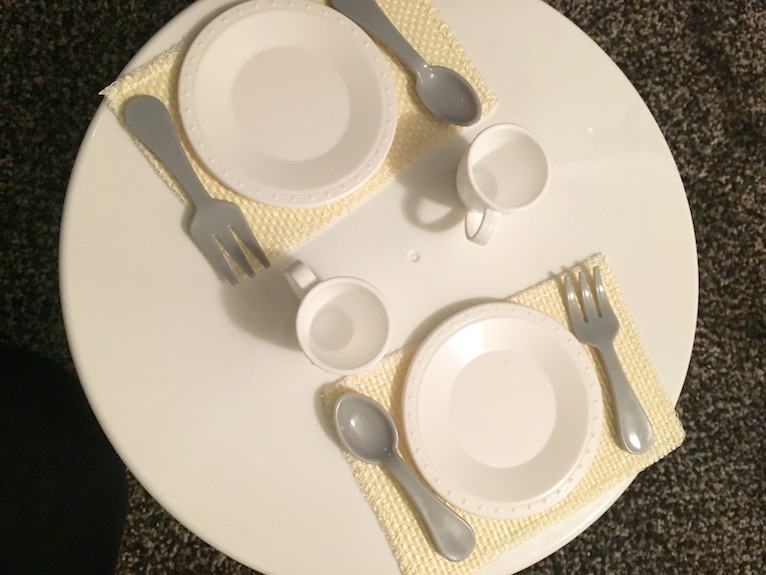 However, the little plates, cups, placemats and utensils that come with this set are absolutely adorable. I would have been even more thrilled if it would have come with some food items too, but oh well.