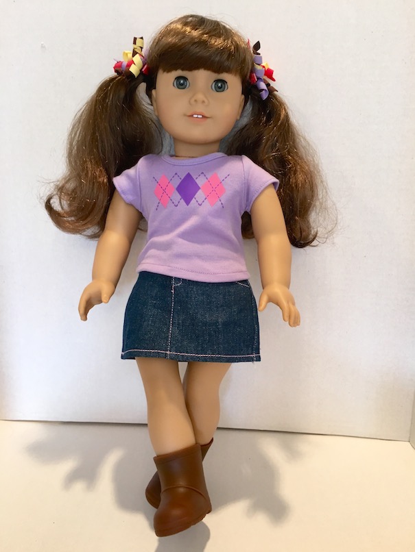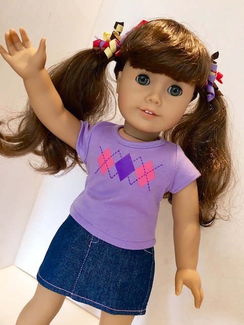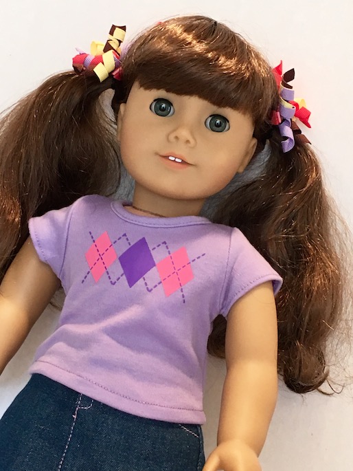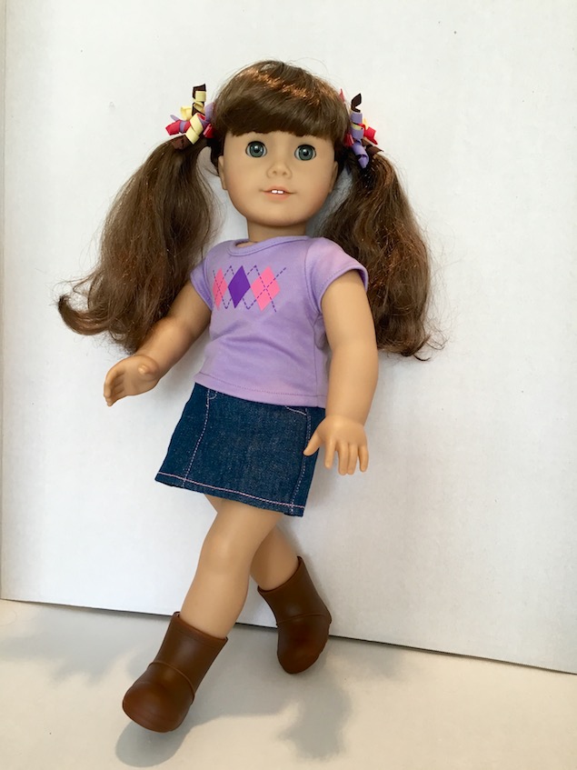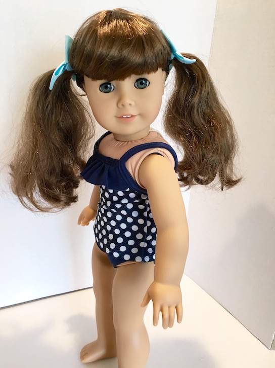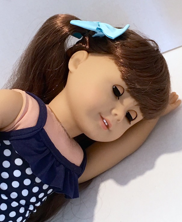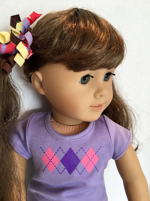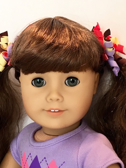 Our Molly has thinner hair than some of the other curly haired dolls, but that is what makes it so nice. I have found that thick, curly hair is much harder to work with. I am not certain, but I think that our Molly has had her hair thinned out a bit, not that you can tell in the least. It’s just made her hair really easy, and fun to work with.