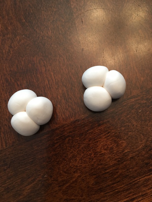 Roll three little balls. Stick them together.