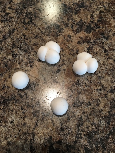 Roll two more little balls. Stick them to the bottom of the first three balls.