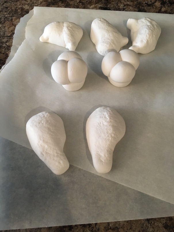 I am LOVING this stuff for doll food creation! One of the main reasons that I like it is that it is soft to work with. It is so much better than polymer clay which is very stiff to start out, and must be conditioned thoroughly before it can be formed. Model Magic is soft and pliable, which is a lifesaver for old and young fingers alike. You can just whip it out of the package, and get right to it.
