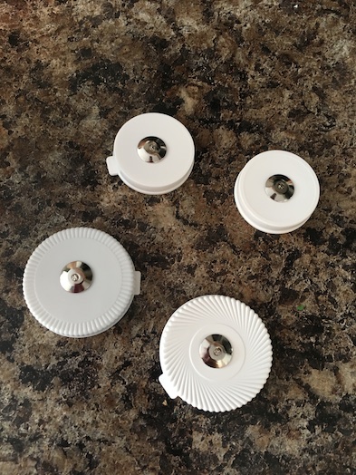 Now carefully push a thumbtack through the centre of each of your dial knobs.