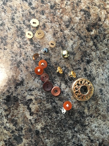 Very cute! Lastly, gather up your metallic buttons and beads.