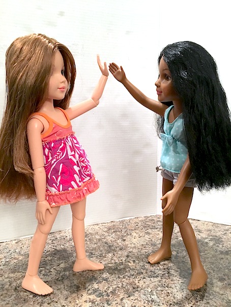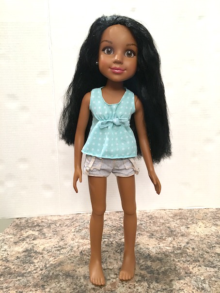Here is a look at the new and improved Addy. She didn’t have quite as many tangles as Suri, but her hair turned out great too!