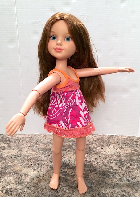 Suri has no joints in her arms. I actually prefer this look for the doll’s arms. I think the jointed elbow looks a bit strange and unnatural, but I suppose it would look okay with longer sleeves.