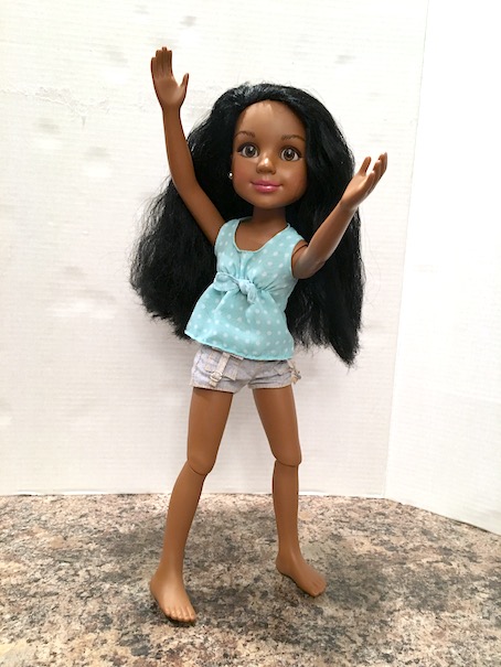 Onto the arms. Addy has jointed elbows and jointed wrists. She is very good at giving high fives. (If she doesn’t fall over immediately. LOL!) 🙂