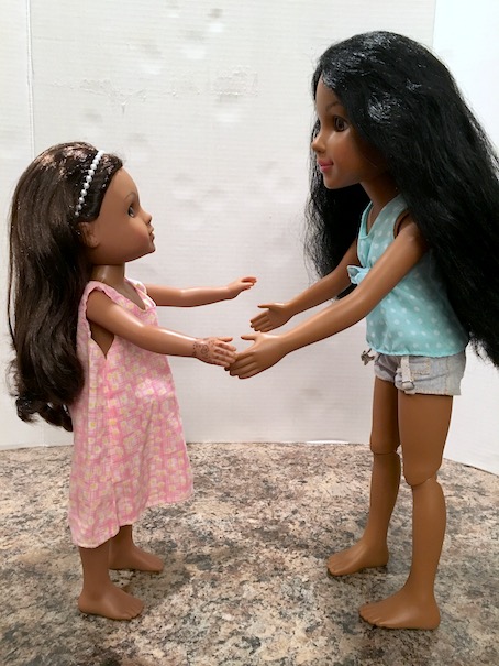 Today we are here with Leena, and her big sister Suri. Leena is our Hearts4Hearts doll, and Suri is a BFC doll that we just rescued. We think that they are adorable as sisters!