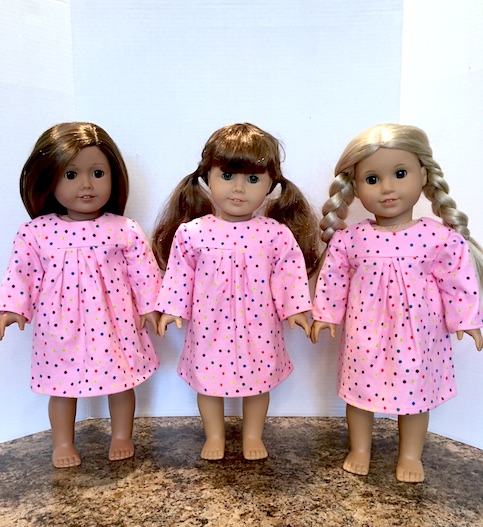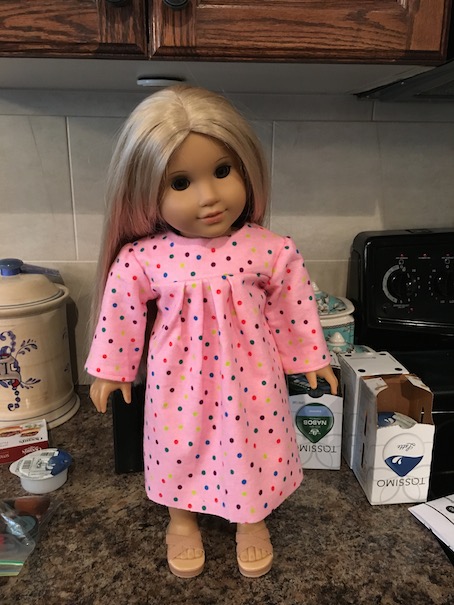 I didn’t forget the jammies! This nighty was made from the Doll Fashion Studio book mentioned above. Notice the tiny polka dot fabric print.
