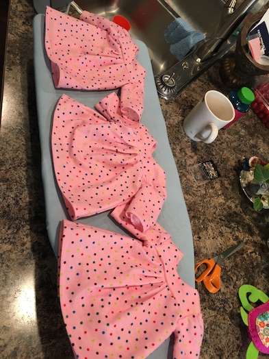 These little bows are my favourite. 🙂 I got the bow pattern from the Pixie Faire School Dance dress pattern. You can permanently attach them to the dress, or choose to leave them separate to double as doll hair clips. 🙂