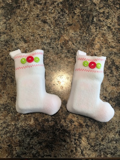 Finally, I made the girls some dolly stockings using a pattern from AmericanGirlIdeas. I stuffed the stockings with little Dollar store trinkets.