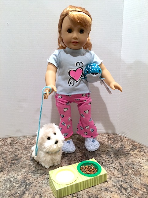 Maryellen’s pajamas are Tolly Tot’s brand. She is holding a Tsum Tsum called Destiny, the whale from Finding Dory. These make adorable plushies for the dolls!