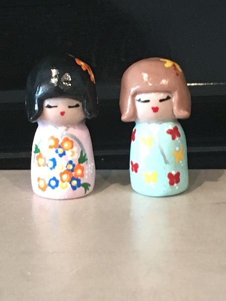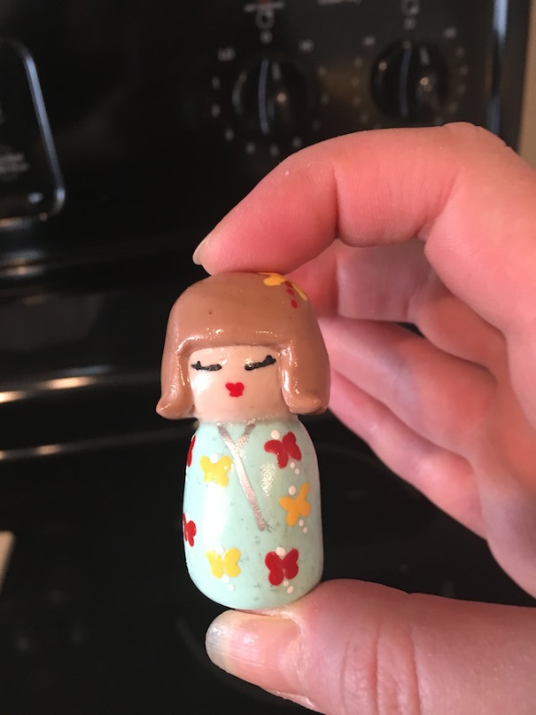 I know it’s not sewing, but mini Kokeshi Dolls were also on my mom’s birthday wish list, so I decided to craft some for her out of polymer clay.