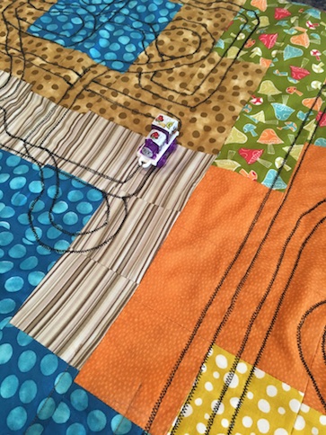 The railway ties are very subtle. I was going to sew them all on there in bright red, but since I was sewing them on one by one, I didn’t want it to be super obvious that they weren’t all exactly the same.